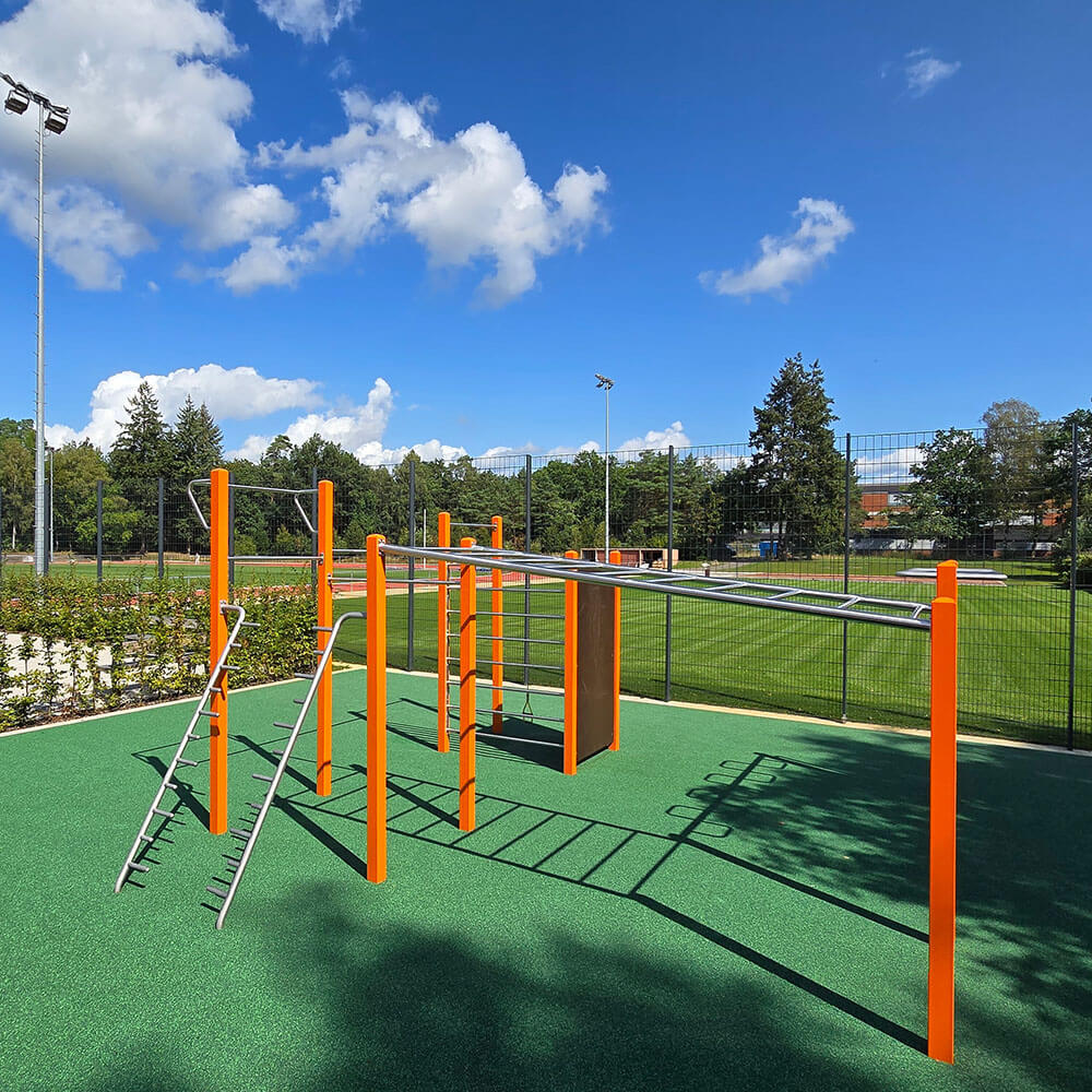 Neben dem leistungsorientierten Sport setzt das Böhmewaldstadion bewusst auf offene Angebote für den Freizeit- und Breitensport. Westlich des Hauptspielfeldes schaffen ein großzügiger Multisportbereich, Kunststoffspielfelder für Basketball und Handball, eine Calisthenics-Anlage mit Fitness- und Aufenthaltsbereich, eine naturnahe Bolzwiese sowie eine Kugelstoßanlage vielfältige Bewegungsmöglichkeiten. Die Bereiche sind klar strukturiert und räumlich miteinander verknüpft. So entsteht ein Ort, der gleichermaßen Training, Begegnung und Aufenthalt ermöglicht – offen für alle Altersgruppen.