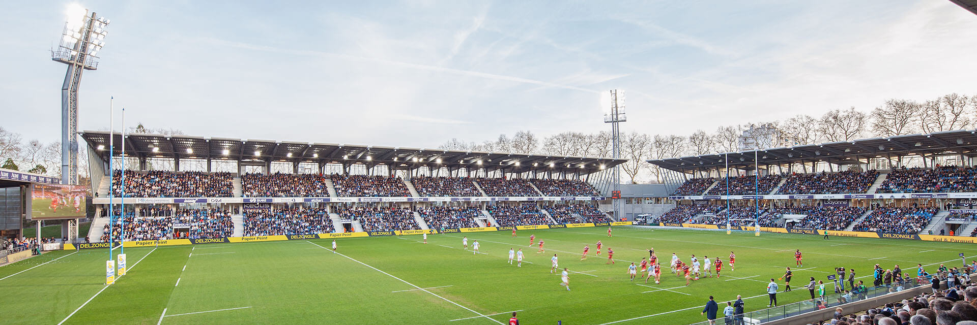 Die grundlegende Veränderung bestand in der Verschiebung des Spielfelds um 14 Meter nach Westen. So konnten die Tribünen deutlich näher an das Spielfeld heranrücken – eine bewusste Abkehr von der früheren Geometrie eines Leichtathletik- oder Radsportstadions hin zu einem kompakten Kessel für Rugby. Diese neue Nähe zwischen Publikum und Spielfeld intensiviert Atmosphäre, Akustik und Identifikation.
