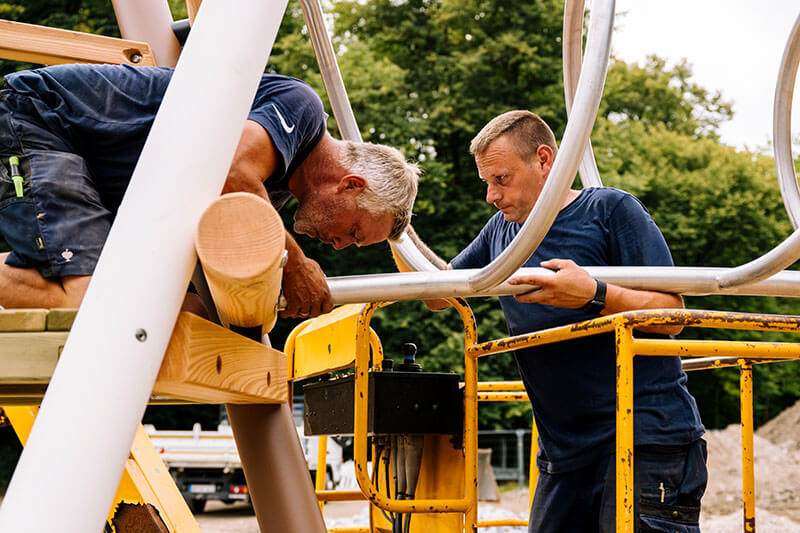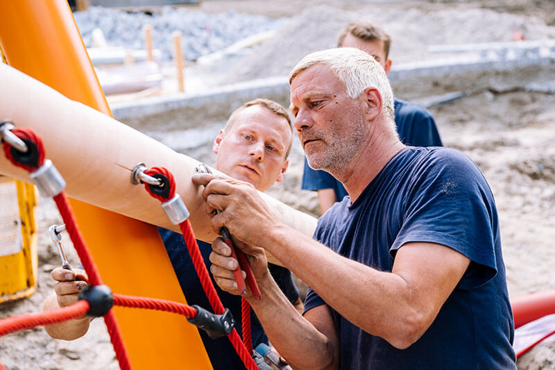 Das Büro Neumann Gusenburger war für die landschaftsplanerische Konzeption verantwortlich und sorgte für die harmonische Integration des Spielplatzes in die bestehende Parklandschaft. DIE SPIELPLATZ-MACHER übernahmen die fachgerechte Montage der Spielgeräte in enger Zusammenarbeit mit dem Garten- und Landschaftsbauer Friedemann Richter. Von den Kranarbeiten über den Geräteaufbau bis zum Feinschliff funktionierte die Kooperation aller Beteiligten reibungslos – ein entscheidender Faktor für den Projekterfolg.