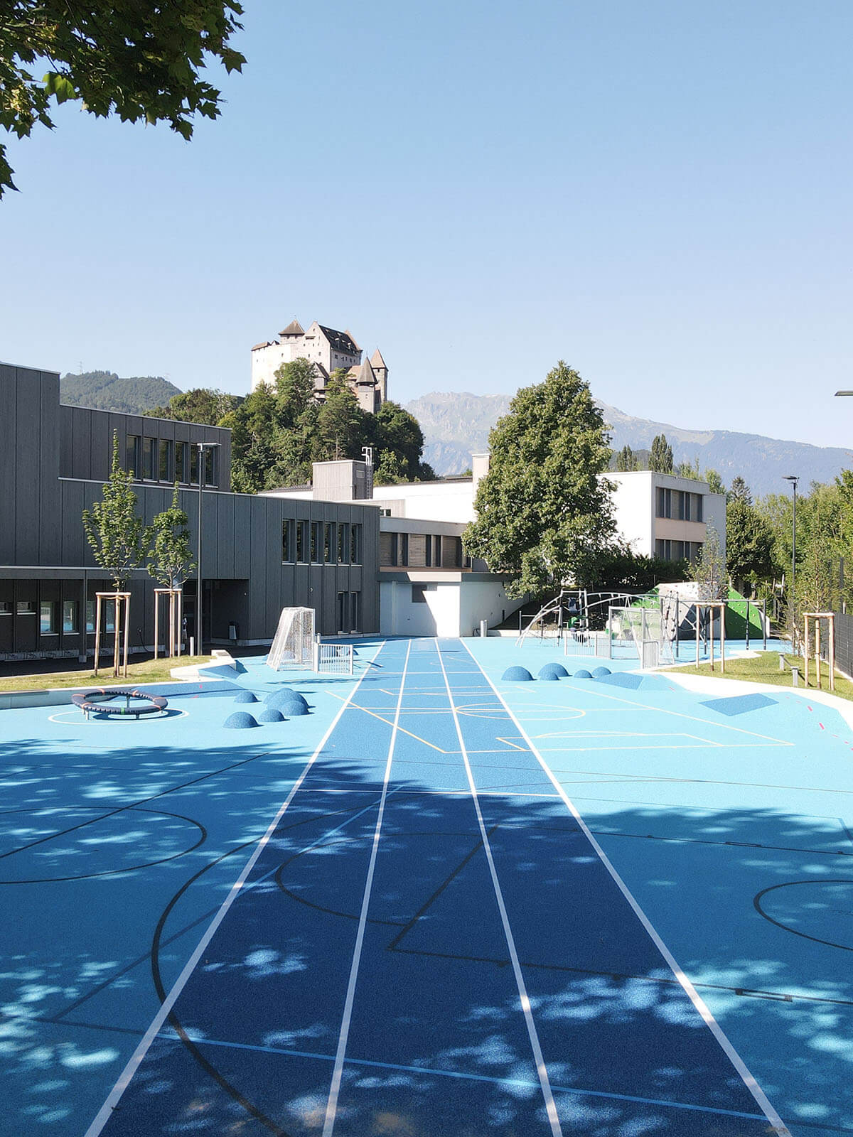 In the municipality of Balzers in the Principality of Liechtenstein, a versatile all-weather pitch was created in the immediate vicinity of a primary and secondary school to replace a rather monofunctional red plastic pitch: the Blue Pitch.