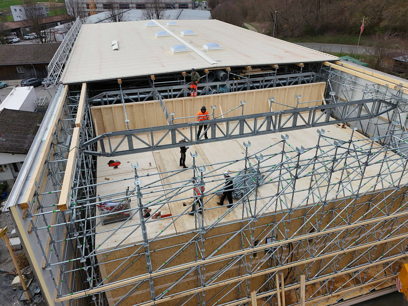 Die neue „Turnhalle im Bernapark Stettlen“ bietet ideale Voraussetzungen für die temporäre Nutzung von circa zehn Jahren. NÜSSLI baute die Halle innerhalb weniger Wochen, und das nachhaltig.
